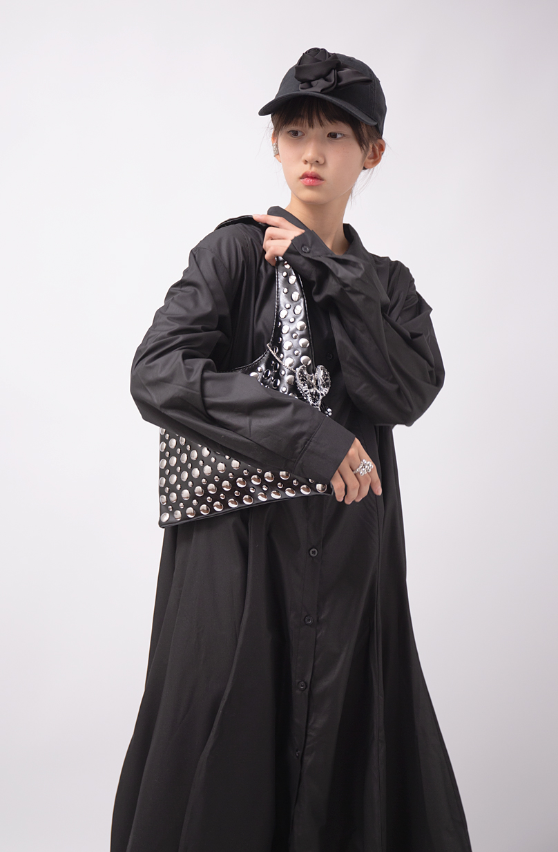 黒一色で合わせやすく、普段のスタイルにも取り入れやすいアイテム。さっと被るだけでコーデに華やかさを添えてくれます。後部にアジャストがついているのでサイズ調整が可能です。