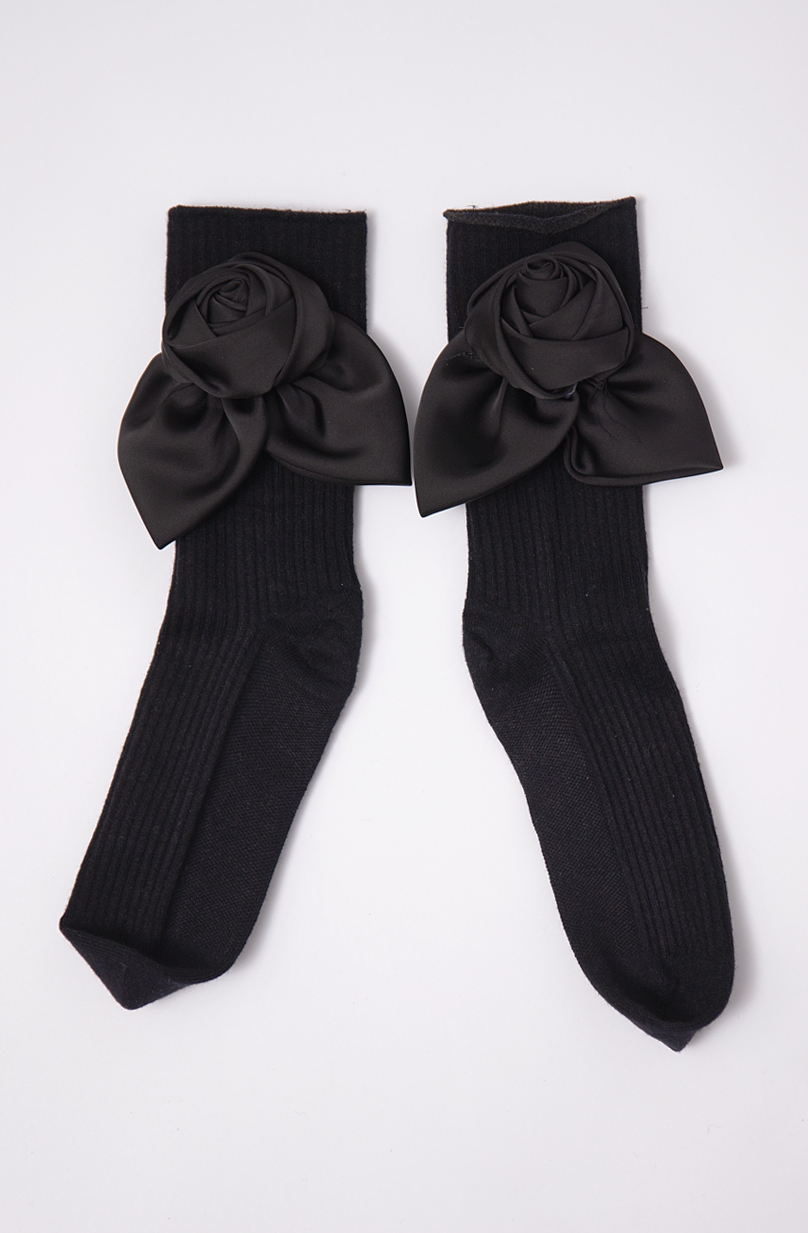 カシミア混であたたかく、柔らかな履き心地の靴下です。足首のサイドには立体的な大きなバラをあしらい、コーディネートのアクセントになる個性的なデザインに仕上げました。